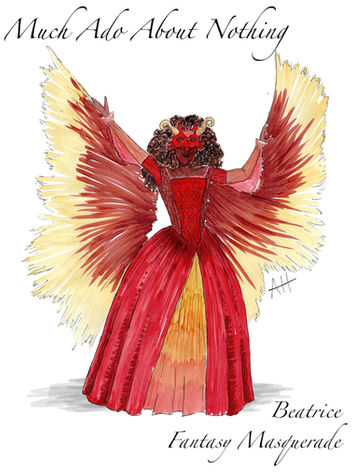 Samples of Abbie Hagen's theoretical costume rendering work, created with a mix of watercolor painting and digital painting.